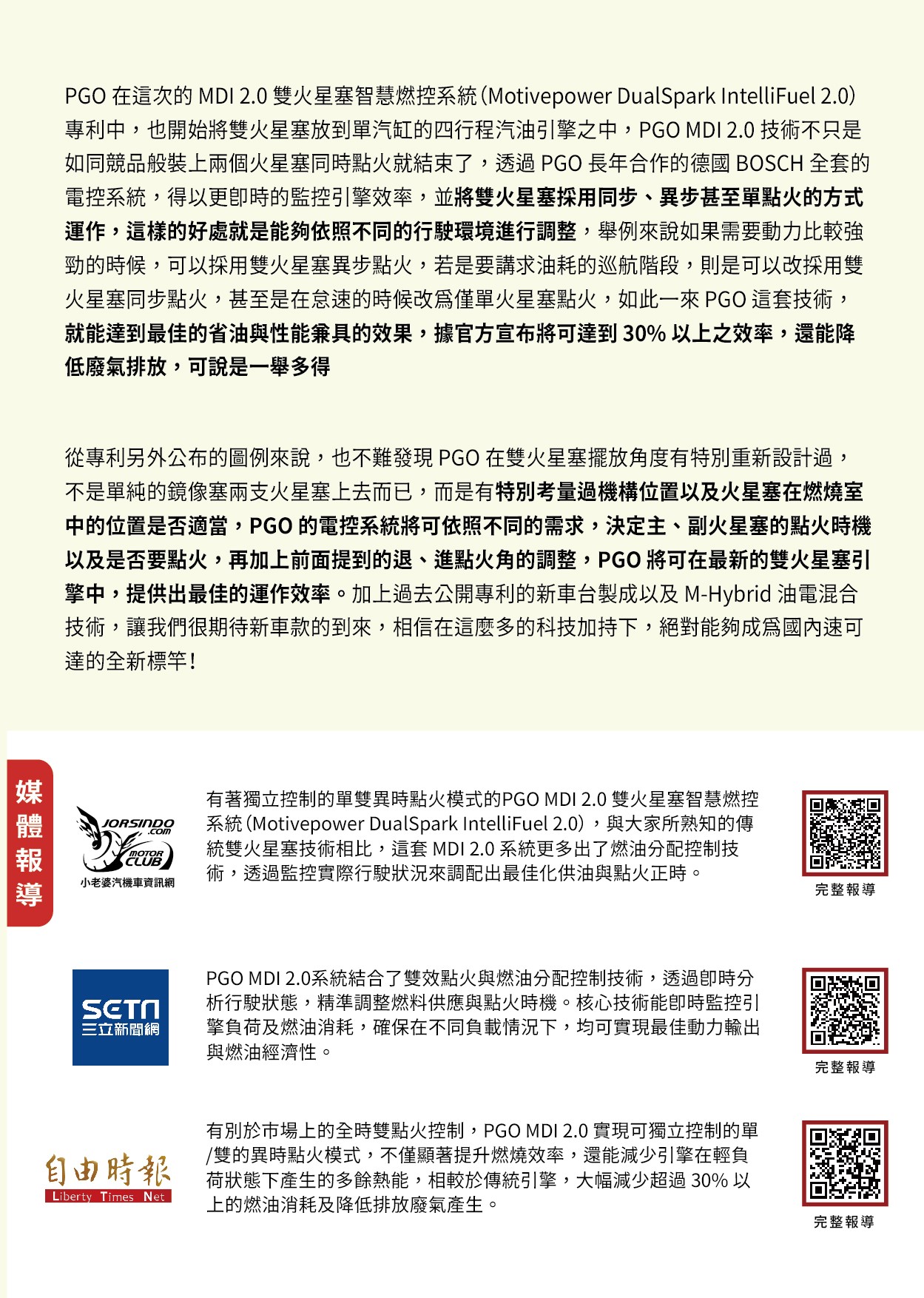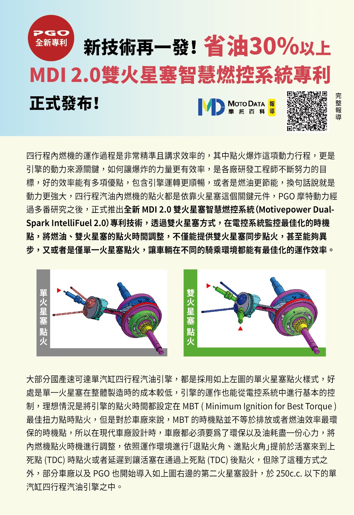 【國內新訊】PGO 新技術再一發!省油 30% 以上 MDI 2.0 雙火星塞智慧燃控系統專利正式發布!
